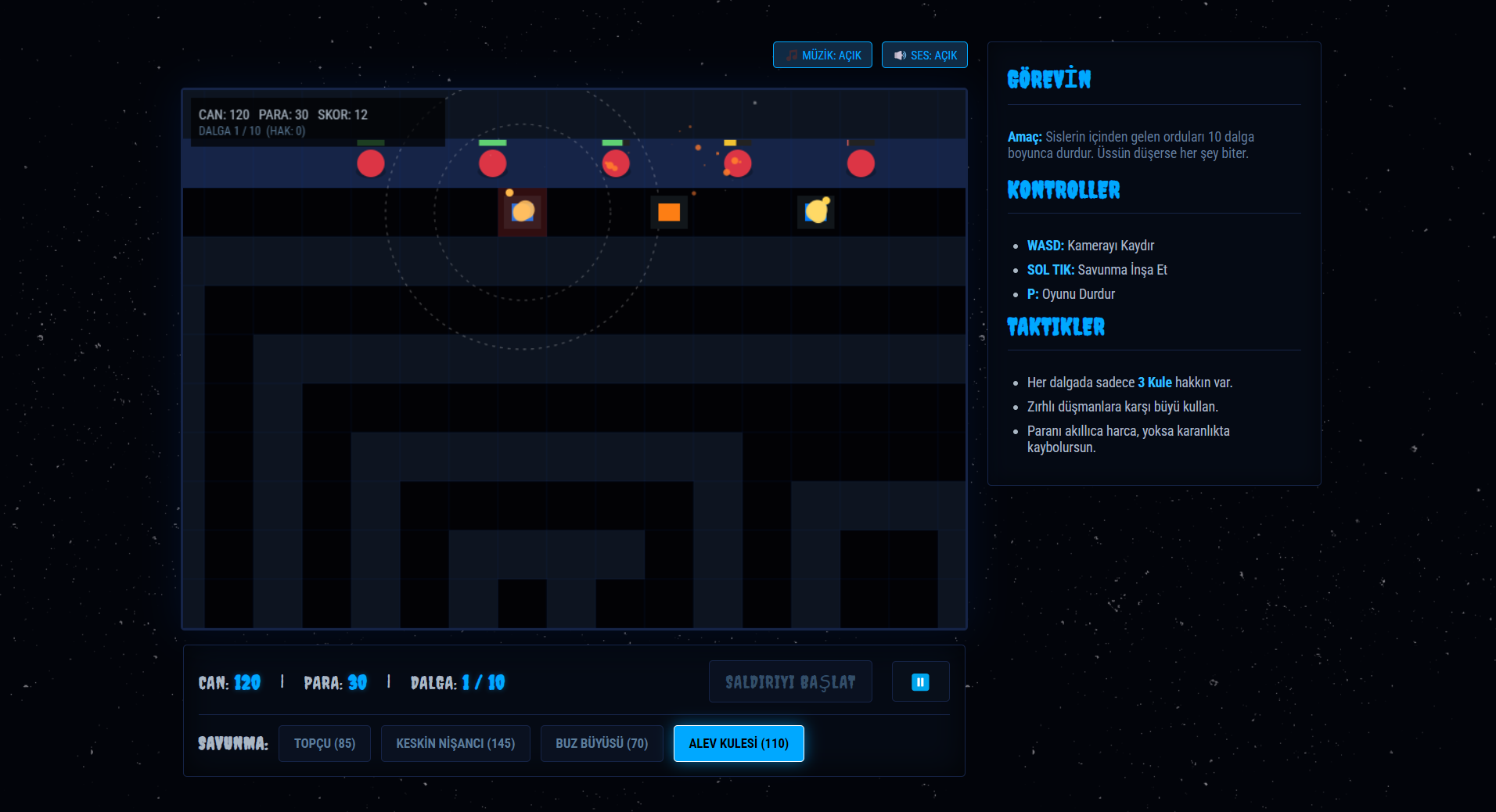2D kule savunma oynanışı